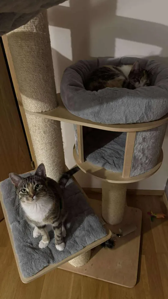 Kiku on tõeline paikiisu! Ta naudib väga lähedust ja jälgib alati huviga, millega inimene parajasti tegeleb. Kismet on veidi tagasihoidlikum, kuid armastab samuti paisid. Mõlemad on ka väga mänguhimulised ja trallitavad kassipoegadele kohaselt mööda tube ringi.🤩