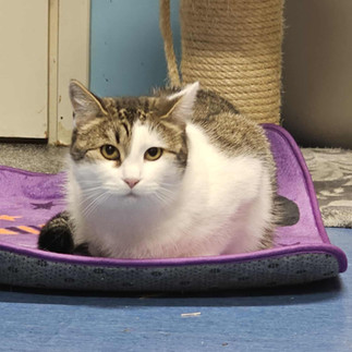 Pehme triibuvalgekirju kasukaga Minna, on umbes 4–aastane nooruslik kiisuneiu.😻